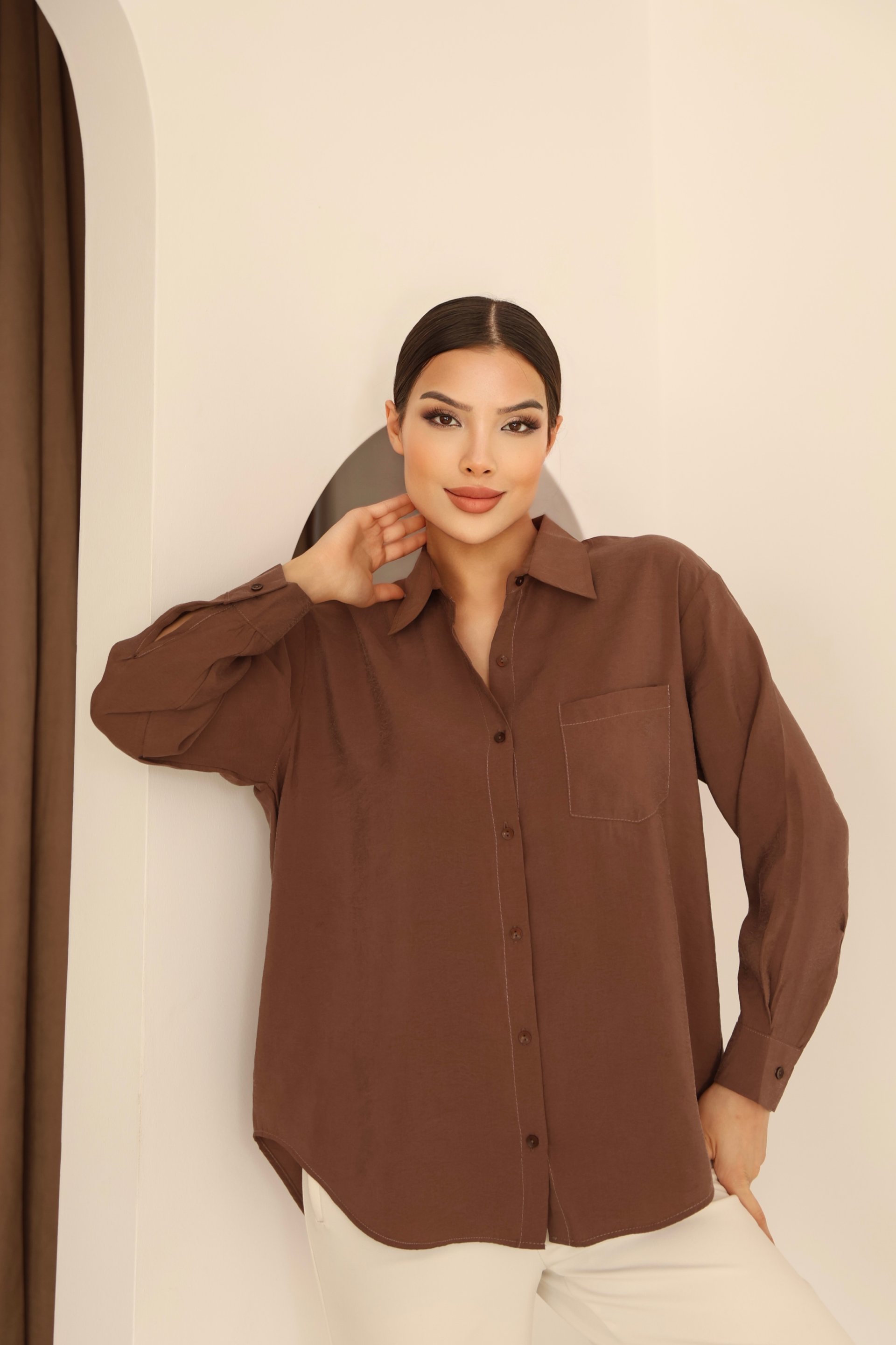 - Uzun kollu tasarımı ile mevsim geçişlerinde ideal bir tercih olurken, v yaka kesimi feminen bir hava katar.