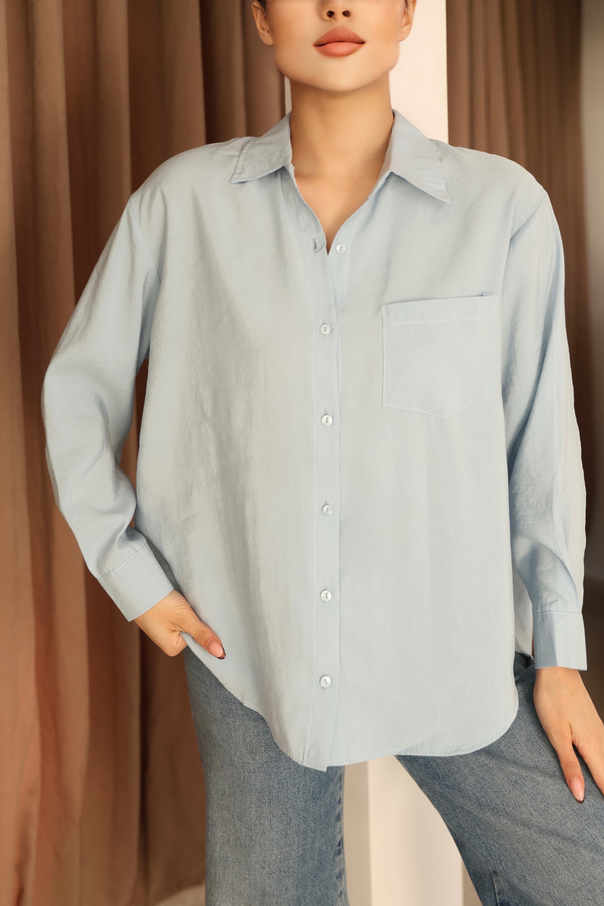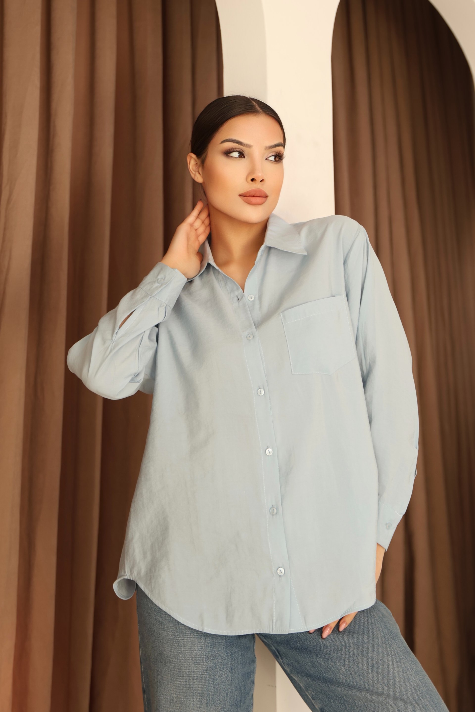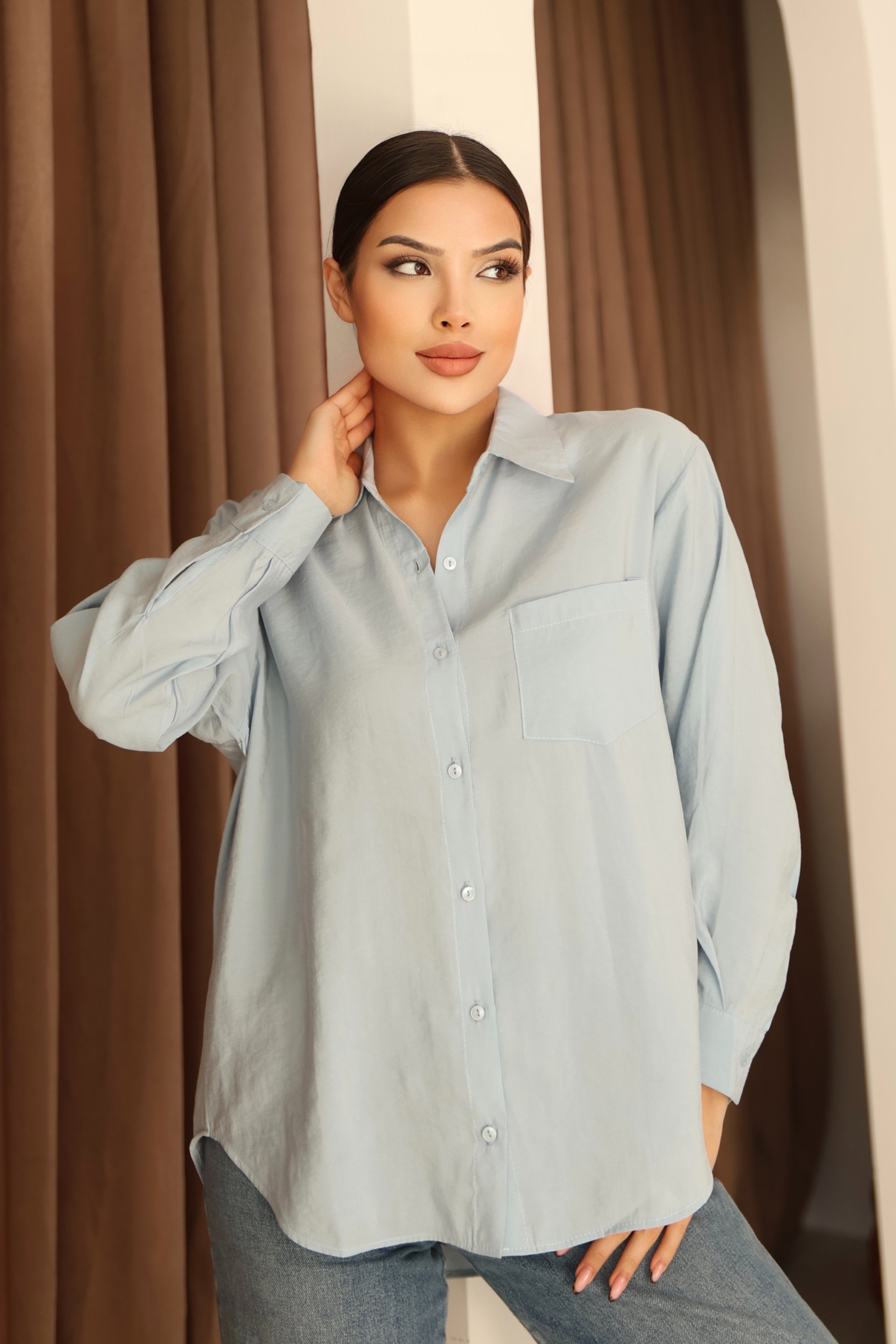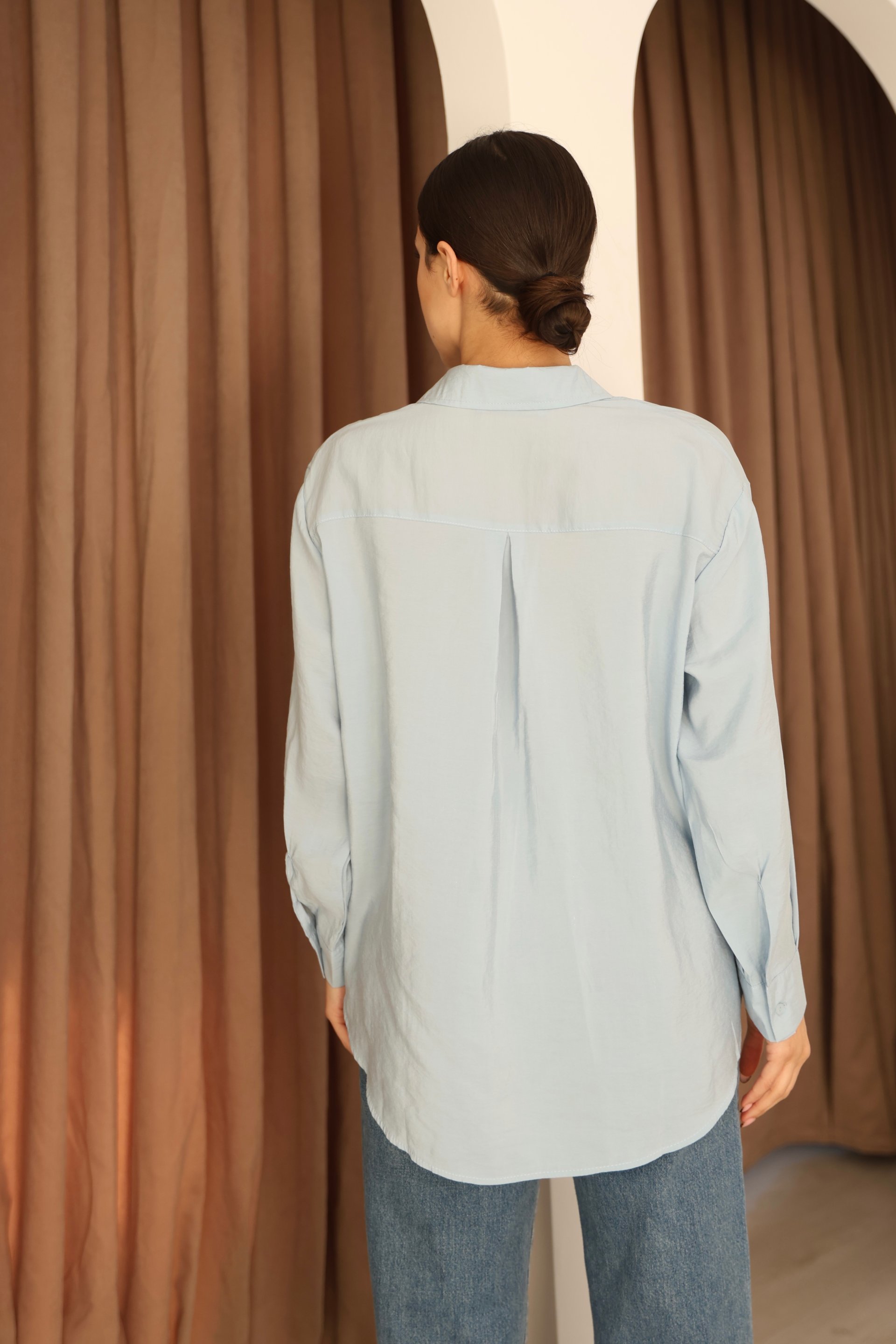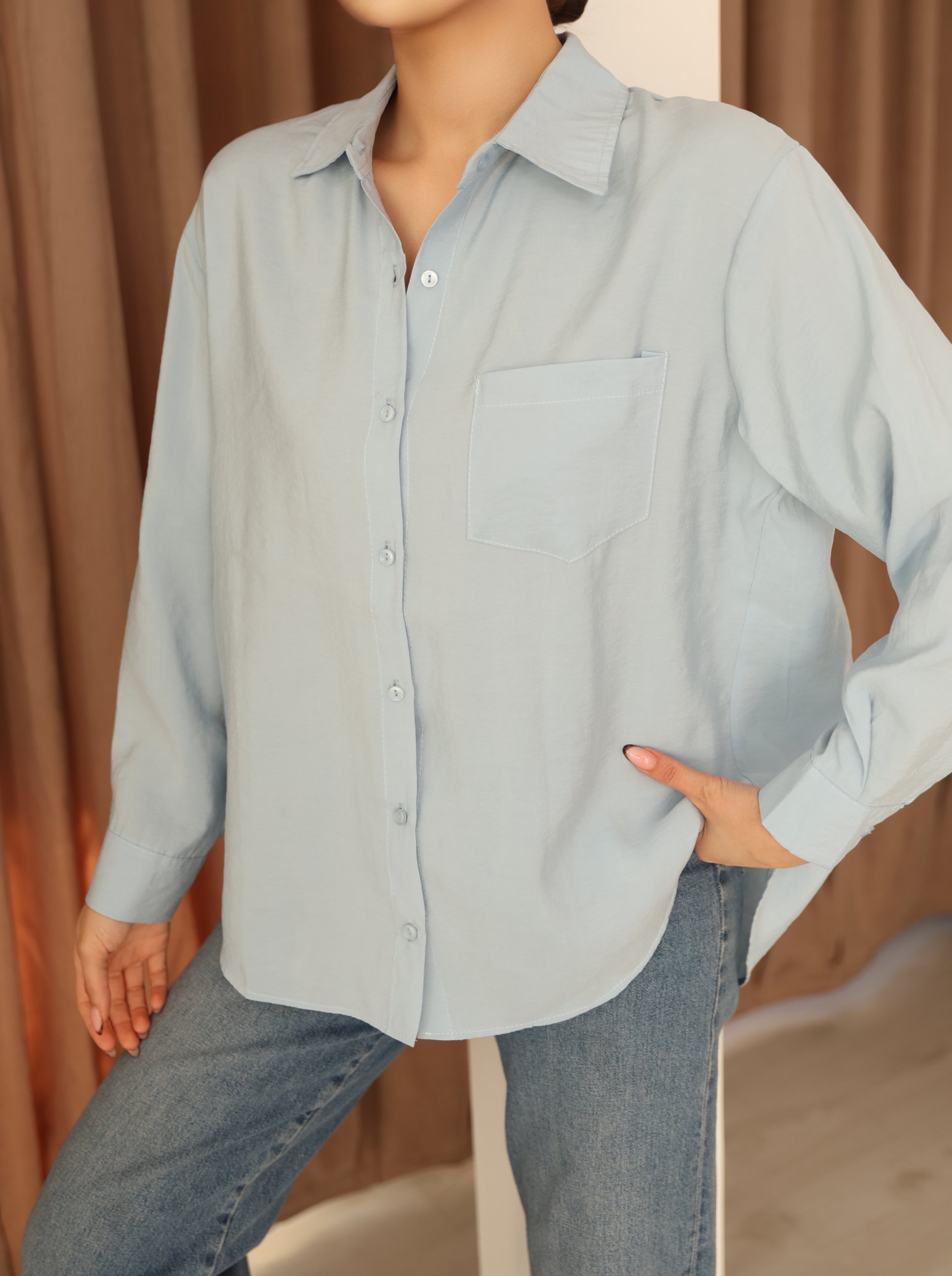 - Basic silueti ile her ortamda rahatlıkla tercih edilebilen bebe mavisi modal gömlek, günlük kullanım için idealdir.
